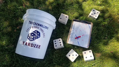 Yardzee is simply outdoor yahtzee. You can also play Farkle with these, and probably a variety of other games we haven't thought of. the Bucket makes it easy to transport to picnics and summer events, and it looks cute just sitting on our own porch at home. :-) My husband cut the wood for the dice, but they can be purchased - some Dollar Trees even carried them in their craft section last year.